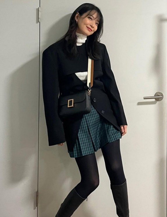 김고은 배우처럼 도톰한 트위드 자켓을 활용하면 TPO에 맞는 코디를 완성할 수 있습니다. 트위드는 고급스러움과 따뜻함을 동시에 제공해 주기 때문에 하객룩에 적합합니다.