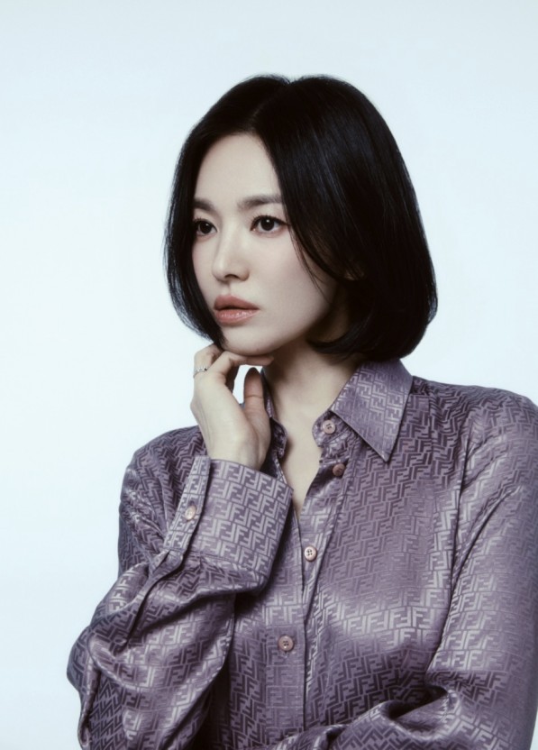 쿨톤 블랙 컬러감이 피부를 더욱 환하게 보여주며, 송혜교 배우의 매력을 한층 더 돋보이게 합니다.