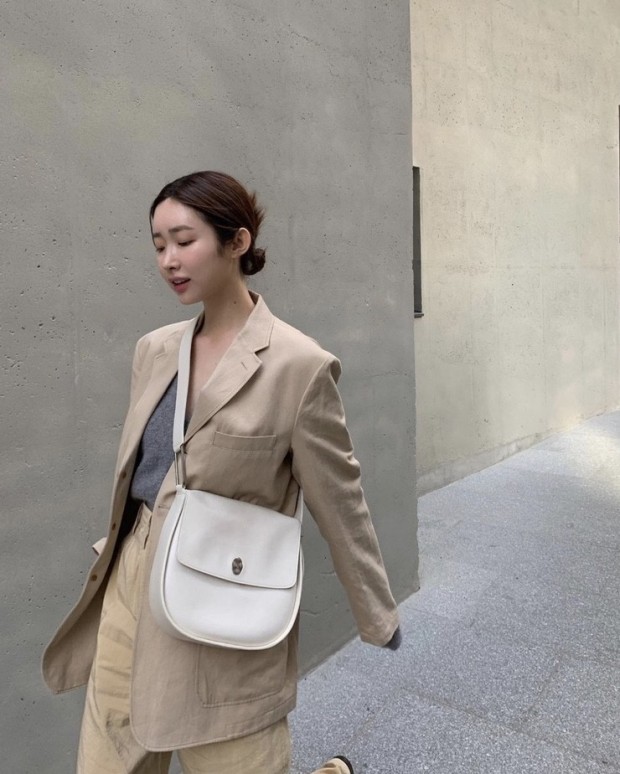 여전히 자연스럽고 내추럴한 패션의 아이콘인 려원도 클래식한 아이템을 활용하여 세련된 드뮤어룩을 완성했습니다