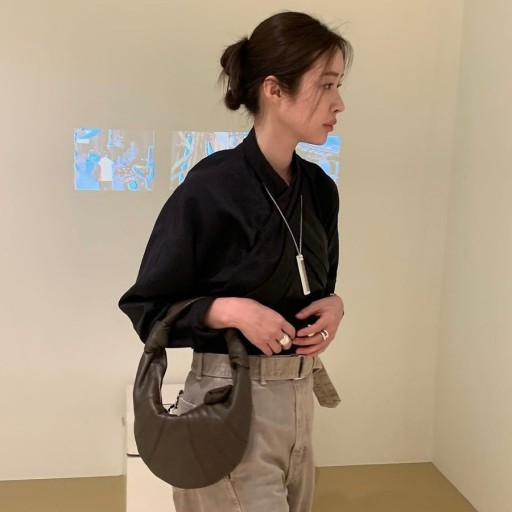 차정원이 착용한 다크브라운 미니사이즈와 블랙 컬러 라지 사이즈 포춘백은 특히 르메르의 대표 색상으로, 고급스러움과 세련됨을 동시에 느낄 수 있어요. 티셔츠에 포춘백을 매치하여 편안하면서도 세련된 느낌을 강조하면서, 포멀한 룩과 매치해 페미니한 자연스러운 룩까지 포춘백의 다양한 매력을 보여주고 있습니다.